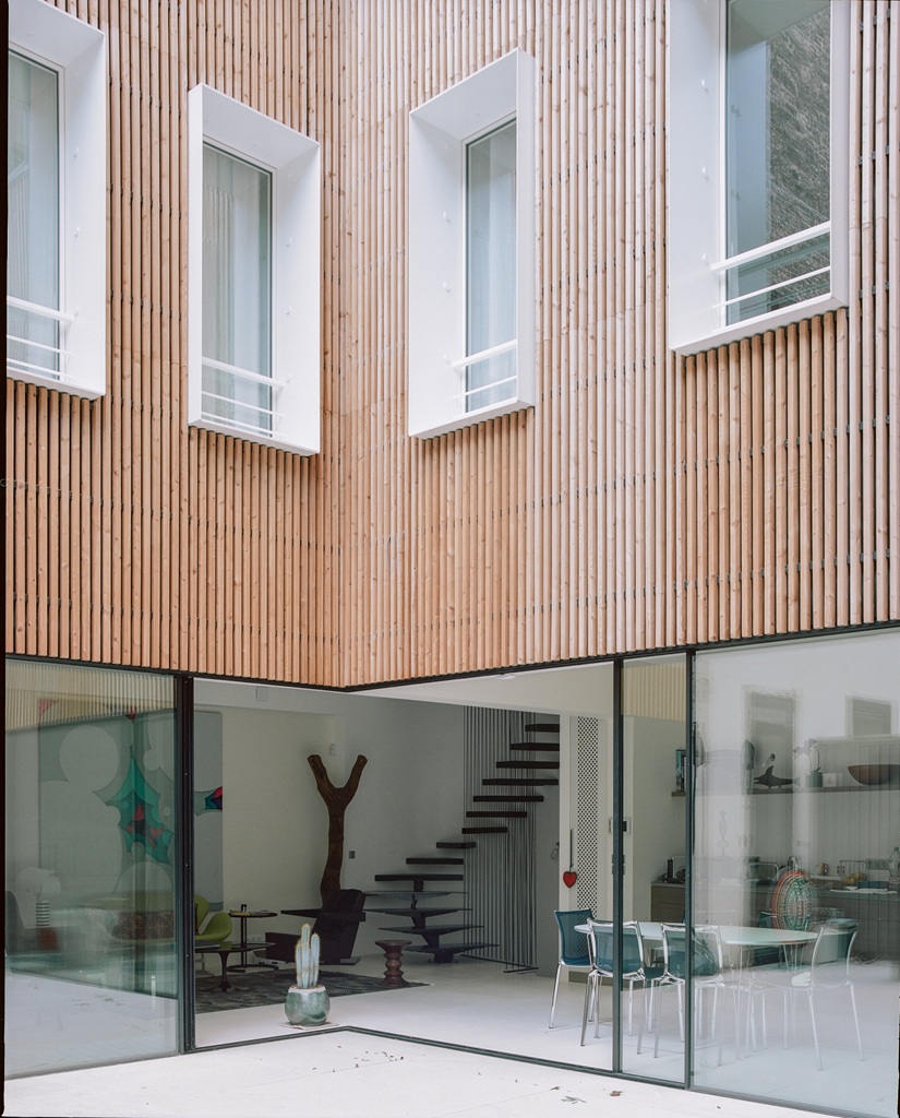 # Contexte de co-propriété# Projet en « Dent Creuse# Maison en Ossature Bois# Châssis Coulissant d’Angle# Traitement Acoustique